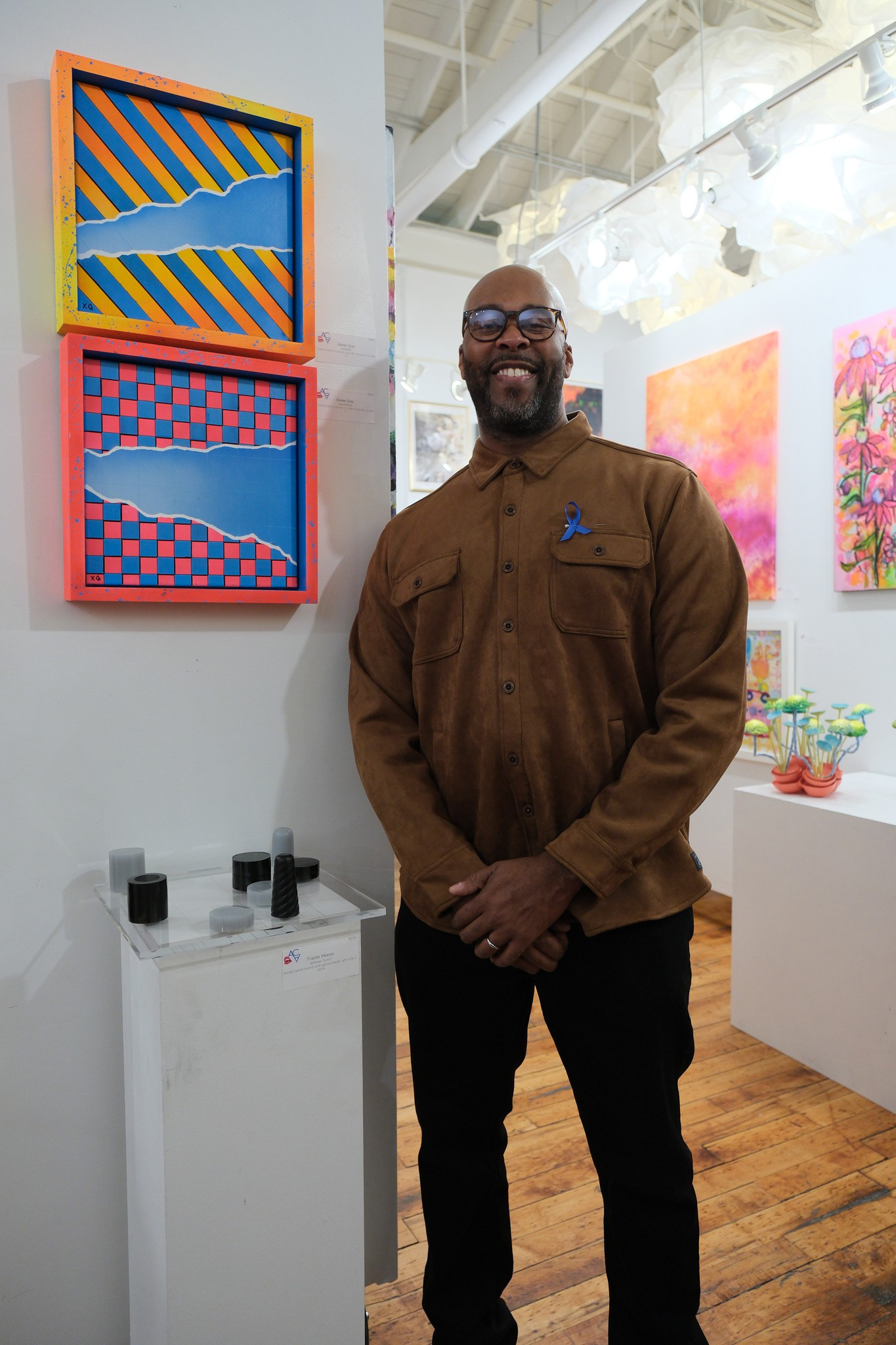 xaviergray is an Indianapolis-based mixed media artist creating bold, neon-infused paintings that blend 90s street art, graphic design, and metaphysical energy. Through geometric forms, cosmic color, and hand-built frames, his work explores transformation and positive affirmations, inviting viewers into vibrant worlds of resilience and empowerment.